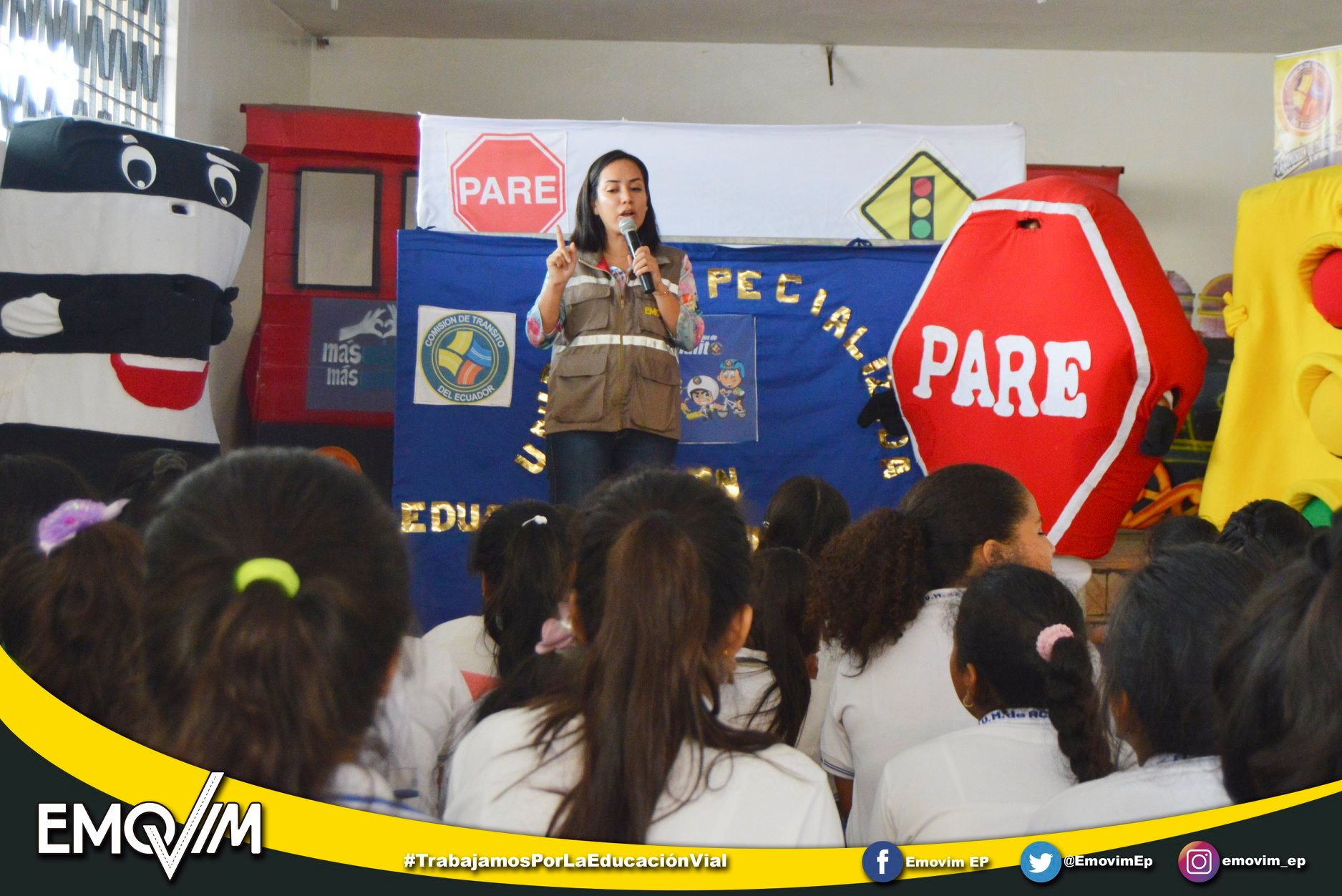 La Alcaldía De Milagro a través de Emovim EP finalizó una semana de capacitaciones sobre la Educación y Seguridad Vial mediante programas lúdicos que incluyó obras teatrales con títeres, con la finalidad de que los alumnos de la Unidad Educativa Victoria Macías de Acuña, conocieran el respeto hacia las señales de tránsito, dispositivos de seguridad y paso cebra.