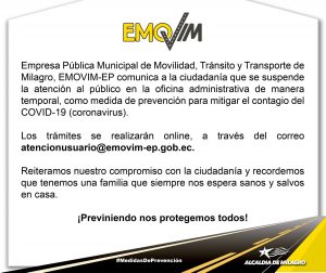 🚨 #ATENCIÓN CONTINUAN OPERATIVOS DE CONTROL La Alcaldía De Milagro junto a EMOVIM-EP y en coordinación con la Comisión de Tránsito del Ecuador y la Policía Nacional, realizan el control operativo de circulación de vehículos por dígito de placa. Todo aquel que no cumple con las disposiciones del #COE NACIONAL es sancionado.
